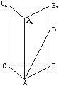 如图,在正三棱柱ABC-A1B1C1中,已知AB=1,D在棱BB1上,且BD=1,若AD与平面AA1C1C所成的角为α,则α等于………………………( )