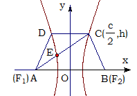 已知梯形ABCD中,,点E分有向线段所成的比为,双曲线过C、D、E三点,且以A、B为焦点,当时,求双曲线离心率的取值范围.