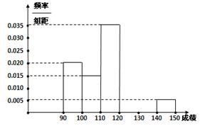 某校高三数学竞赛初赛考试后,对考生的成绩进行统计(考生成绩均不低于90分,满分150分),将成绩按如下方式分成六组,第一组