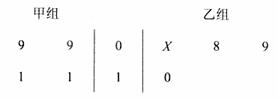 右边茎叶图记录了甲、乙两组各三名同学的植树棵数.乙组记录中有一个数据模糊,无法确认, 在图中以X表示.