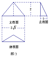 已知一个三棱锥的三视图如图2所示,其中俯视图是顶角为的等腰三角形,则该三棱锥的外接球体积为.