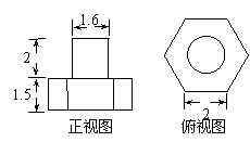 若一个螺栓的底面是正六边形,它的正视图和俯视图如图所示,则它的体积是
