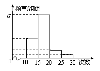 对某校高一年级学生参加社区服务次数进行统计,随机抽取M名学生作为样本,得到这M名学生参加社区服务的次数.根据此数据作出了频数与频率的统计表和频率分布直方图如下: