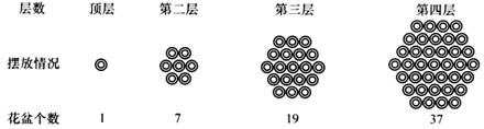 如图所示,某公园设计节日鲜花摆放方案,其中一个花坛由一批花盆堆成六角垛.顶层一个,以下各层堆成正六边形,逐层每边增加一个花盆,若这垛花盆一共有 8层花盆,则最底层的花盆的总个数是