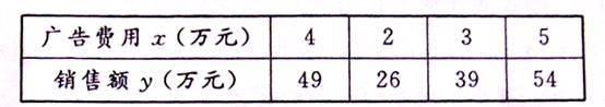 根据上表可得回归方程中的为9.4,据此模型预报广告费用为