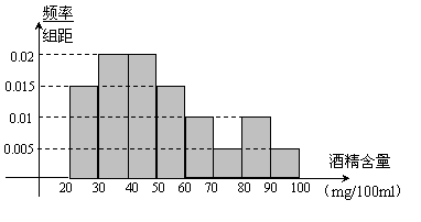 (本题满分8分)为了检测某种产品的质量,抽取了一个容量为100的样本,数据的分组及频率如下表: