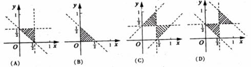 设集合A={(x,y)|x,y,1-x-y是三角形的三边长},则A所表示的平面区域(不含边界的阴影部分)是( )