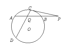 (1)求线段PC的长; (2)作⊙O的弦CD交AB于点Q(CQ<DQ),且Q为AB中点,又CD = 5,求线段CQ的长。