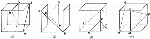 下面四个正方体图形中,A、B为正方体的两个顶点,M、N、P分别为其所在棱的中点,能得出AB∥平面MNP的图形是( )