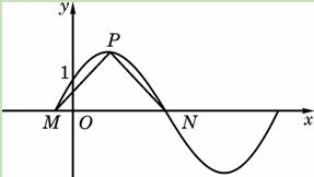 )的图象与y轴交于点(0,1). 设P是图象上的最高点,M、N是图象与x轴的交点,则