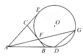 如图,AD,AE,BC分别与圆O切于点D,E,F,延长AF与圆O交于另一点G。给出下列三个结论: