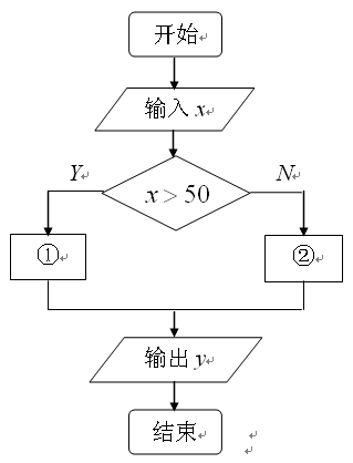某算法的程序框如右图所示,若输入量x为2,则输出量y=( )![]()