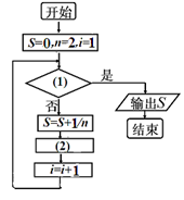 如左图的程序框图(未完成).设当箭头a指向①时,输出的结果s=m,当箭头a指向②时,输出的结果s=n,则m+n= ( )![]()