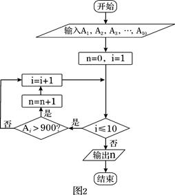 表示6号车间的产量为980件),图2是统计下表中产量在一定范围内车间个数的一个算法流程图,那么算法流程(图2)输出的结果是( ).