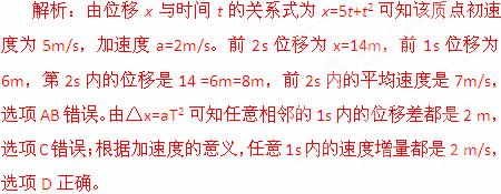 (2013北京丰台期末)某质点做匀变速直线运动的位移x与时间t的关系式为x=5t+t2(各物理量均采用国际单位制单位),则该质点
