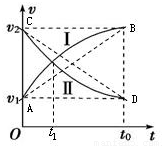 ,由图看出,图线Ⅱ与坐标轴所围“面积”大于AB连线与坐标轴所围“面积”,说明物体Ⅱ的位移大于匀加速运动的位移,则平均速度大小大于