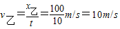 由图中几何关系可知,在这10s内乙的位移x乙=100m