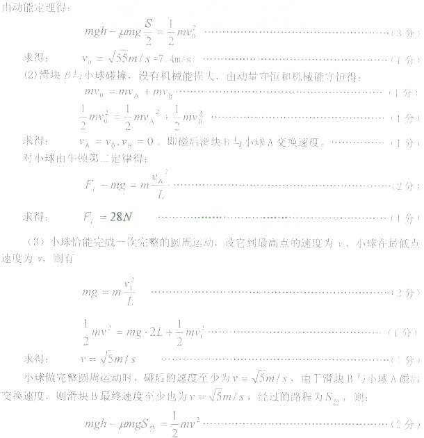 (2)滑块B与小球第一次碰撞后瞬间,绳子对小球的拉力;