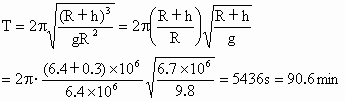 前面“神舟”5号周期的计算是一种近似的计算.根据“神舟”5号绕地球运行时离地面的高度的准确数据,可计算其周期的准确值. 已知:“神舟”5号绕地球运行时离地面的高度为343km.根据牛顿第二定律有: