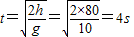 一物体从离地高h=80m处自由下落,g=10m/s2,求:(1)该物体需要多长时间落地?
