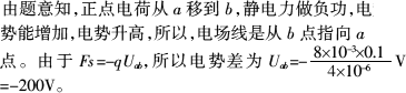 在匀强电场中,沿电场线方向上有相距10 cm的a、b两点,在8×10-3 N的外力作用下,把4×10-6 C的正点电荷匀速地从a移到b,则a、b两点的电势差为________V,该电场线的方向是从________点指向________点.