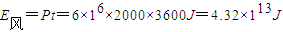 £¨2£©Ã¿Ì¨·ç»úÿÄêÀûÓõÄ×ÔÈ»½ç·çÄÜΪ4.32×1013J£»