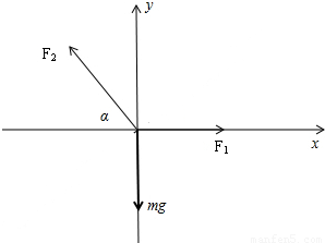 如图建立坐标系对小球进行受力分析,由于小静止处于平衡状态,满足平衡条件F合=0.