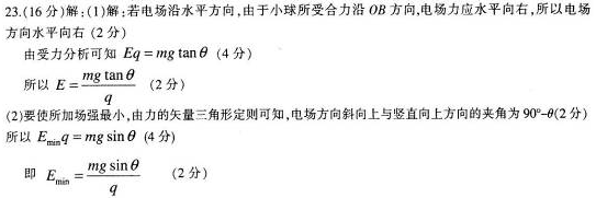 【小题2】若要使所加匀强电场的场强为最小值,求场强的大小和方向。