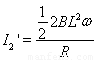 ,两个边切割产生的感应电流都是顺时针所以感应电流方向为负,大小