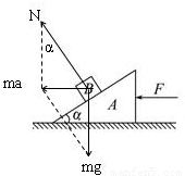 如图所示,在水平面上有一质量为M的楔形木块A,其倾斜角为α,一质量为m的木块B放在A的斜面上.现对A施一水平推力F,使B与A不发生相对滑动,忽略一切摩擦,则B对A的压力大小为( )A.mgcosα