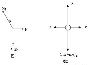 α,B球受到重力mBg、墙的弹力F和A的支持力NB,如图1