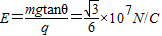 【答案】分析:小球受重力、拉力、电场力三个力处于平衡状态,根据受力图,利用合成法求出电场力的大小,再根据电场强度的定义式求电场强度.