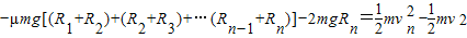 由以上三式可整理得v2-2μg[(R1+R2+…+Rn-1)+(R2+R3+…+Rn)]≥5gRn