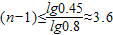 将v=12m/s,μ=0.5,R1=2m,k=0.8,g=10m/s2代入上式,整理得0.8n-1≥0.45,