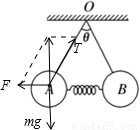 解答:解:对球A受力分析,受重力mg、拉力T、弹簧的弹力F,如图