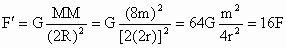 两大小相同的实心小铁球紧靠在一起,它们之间的万有引力为F,若两个半径是小铁球2倍的实心大铁球紧靠在一起,则它们之间的万有引力为
