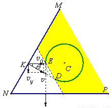 ,即粒子垂直MN板入射。如图所示,粒子从K点入射后做匀速直线运动从D点开始进入磁场,粒子在进入磁场后,根据左手定则,所受的洛伦兹力斜向上,要使粒子能垂直打到水平挡板NP,则粒子需偏转300°后从E射出,做匀速直线运动垂直打到NP。