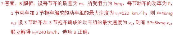 (2012山西太原期末)把动力装置分散安装在每节车厢上,使其既具有牵引动力,又可以载客,这样的车辆叫动车而动车组就是几节自带动力的车辆(动车)加几节不带动力的车辆(也叫拖丰)编成一组,就是动车组.假设动车组运行过程中受到的阻力与其受到的重力成正比,每节动车与拖车的质量都相等,每节动车的额定功率都相等.若1节动车加3节拖车编成的动车组的最大速度为120km/h,则3节动车加3节拖车编成的动车组的最大速度为( )