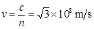 本题考查光的折射现象,根据题目所给入射角和折射角,以及折射定律可求得第一问,由公式n=c/v可求得在玻璃中的速度