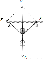 物体静止,说明两个拉力F的合力F′与G大小相等方向相反,G不变,所以两个拉力的合力保持不变.即:两侧绳子对滑轮的合力不变.