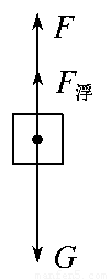 【解析】弹簧测力计示数减小是由于金属块受到水向上的浮力作用.浮力的反作用力作用于水,从而使台秤的示数增大.金属块的受力分析如图.图中金属块静止,故有F=G-F浮又因G=ρa3g=30 N