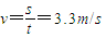水平速度即为风速 v=3.3m/s