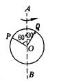 如图所示,一圆环,若以AB直径为轴作匀速转动,则环上 P、Q两点的线速度大小之比υP:υQ为_______.![]()