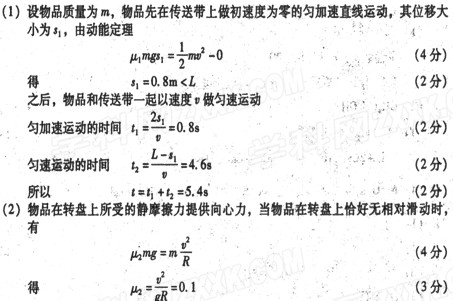=2.0m/s,物品在转盘上与轴O的距离R=4.Om,物品与传送带间的动摩擦因数