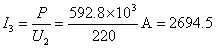 输电线路损失 DP=P0×5%=624×103×5%W =3.12×104W 输电电流由焦耳定律得 I2=43.3A 则升压变压器原副线圈匝数比 n1∶n2=I2∶I1=43.3∶2600 =433∶26000 用户端降压变压器的输出功率等于降压变压器的输入功率 P=P0-DP=592.8×103W 输出电流