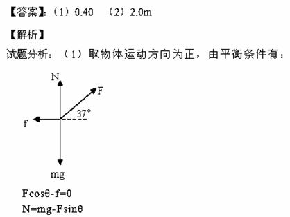 如图所示,质量为0.78kg的金属块放在水平桌面上,在与水平方向成37°角斜向上、大小为3.0N的拉力F作用下,以4.0m/s的速度向右做匀速直线运动。已知sin37°=0.60,cos37°=0.80,g取10m/s2。求:(1)金属块与桌面间的动摩擦因数;