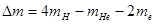 质量为4.0015u,电子质量为0.00055u,1u相当于931.5MeV)