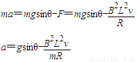 (2)在加速下滑过程中,当ab杆的速度大小为v 时,求此时ab杆中的电流及其加速度的大小;