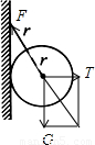 解:对球受力分析如图所示,小球受重力、墙壁的弹力T及绳子的拉力F而处于平衡;