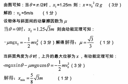 某物体以一定初速度vo沿斜面向上运动,它所能到达的最大位移x与斜面倾角θ的关系如图所示,试求该最大位移x的最小值。